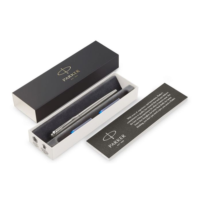 Перьевая ручка Parker Jotter Stainless Steel от официального дилера Parker в Северодвинске. Вы можете дополнительно заказать гравировку, которая подчеркнет Вашу оригинальность и придаст памятность статусному подарку. Все ручки Паркер поставляются в фирменном футляре.
