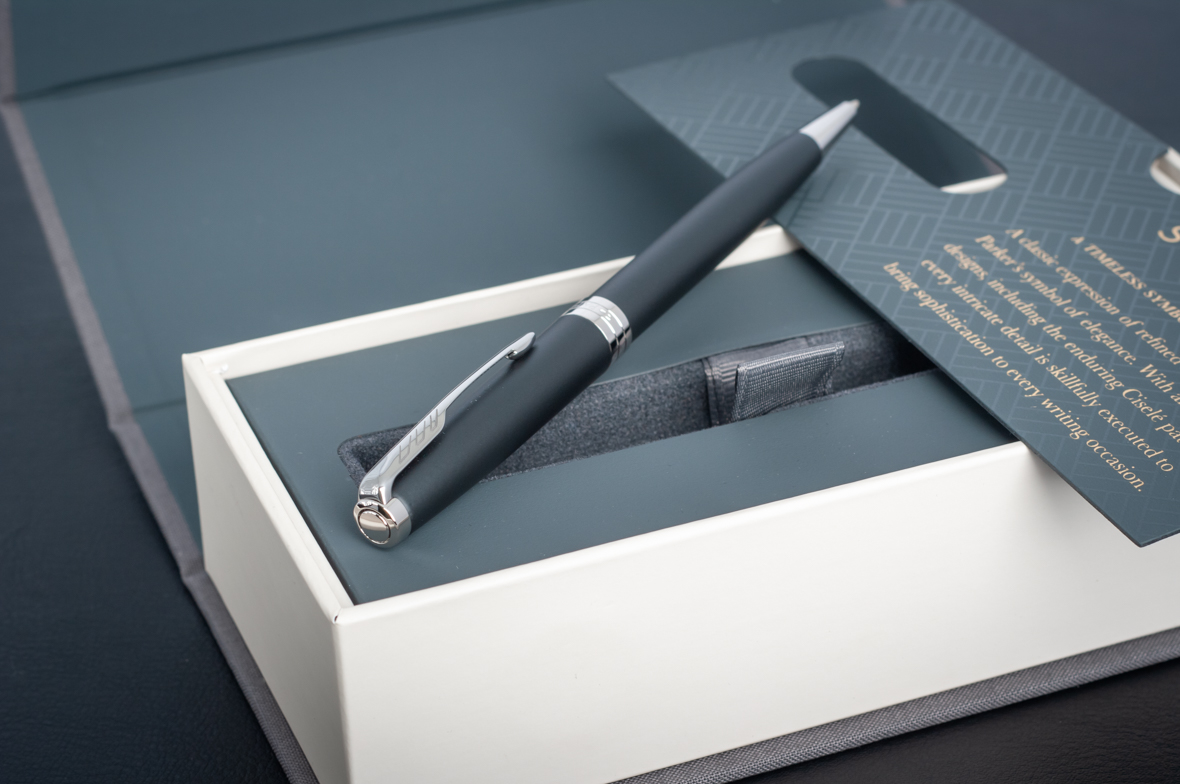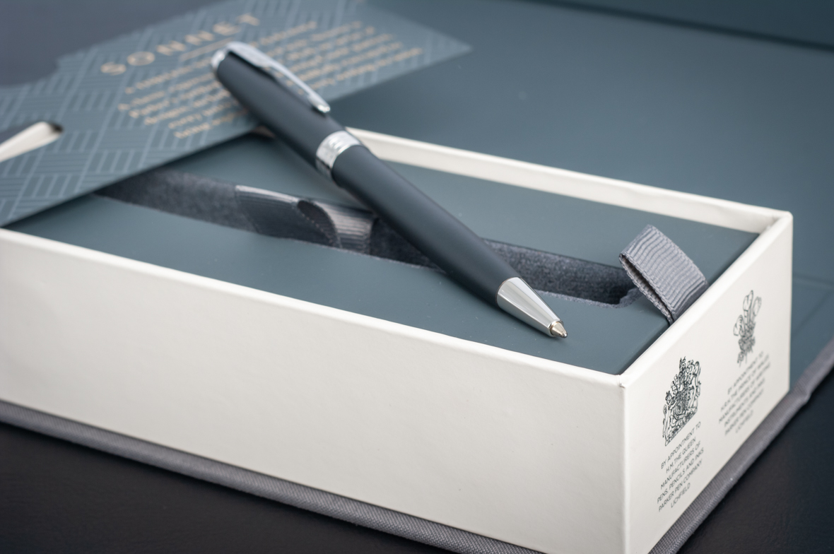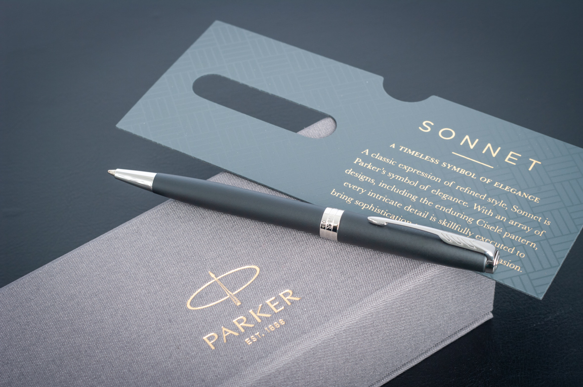Шариковая ручка Parker Sonnet Matte Black CT от официального дилера Parker в Северодвинске. Вы можете дополнительно заказать гравировку, которая подчеркнет Вашу оригинальность и придаст памятность статусному подарку. Все ручки Паркер поставляются в фирменном футляре.